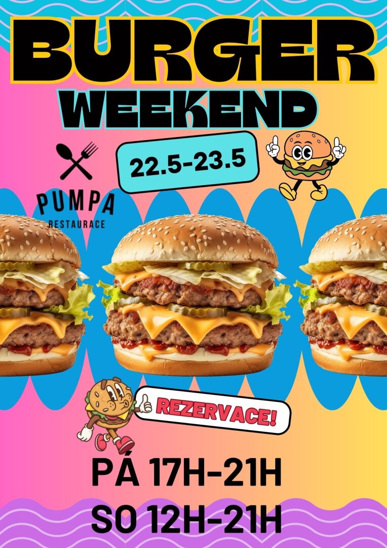 Otevřeno máme od pondělí do pátku pouze obědy, párkrát za měsíc pořádáme BURGERWEEKEND. a víkendové obědy.